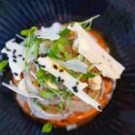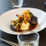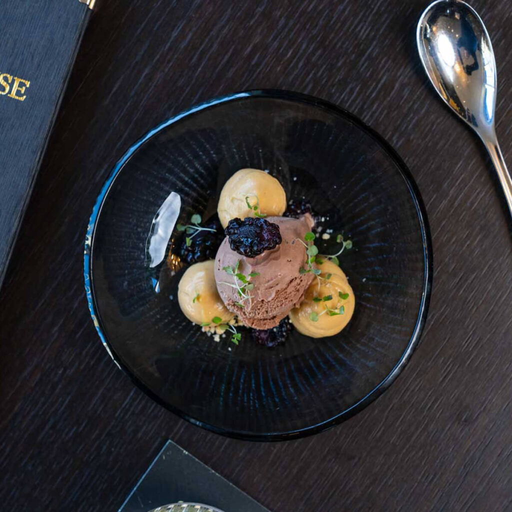 The dining room situated on the upper-level hosts 40 diners, while the private dining room on the lower level is a suitably intimate environment for groups of up to 10, with a bijou outdoor drinks terrace overlooking the banks of the flowing river.